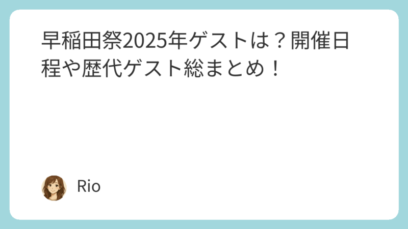 - 早稲田祭2025本祭:11月1日(土)・2日(日)